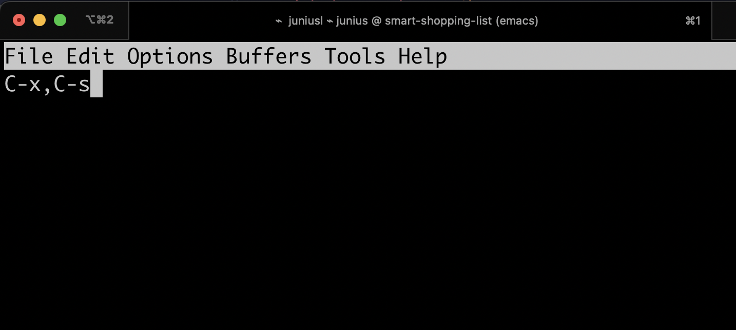 To save a file in emacs, use Ctrl + x, Ctrl + s.